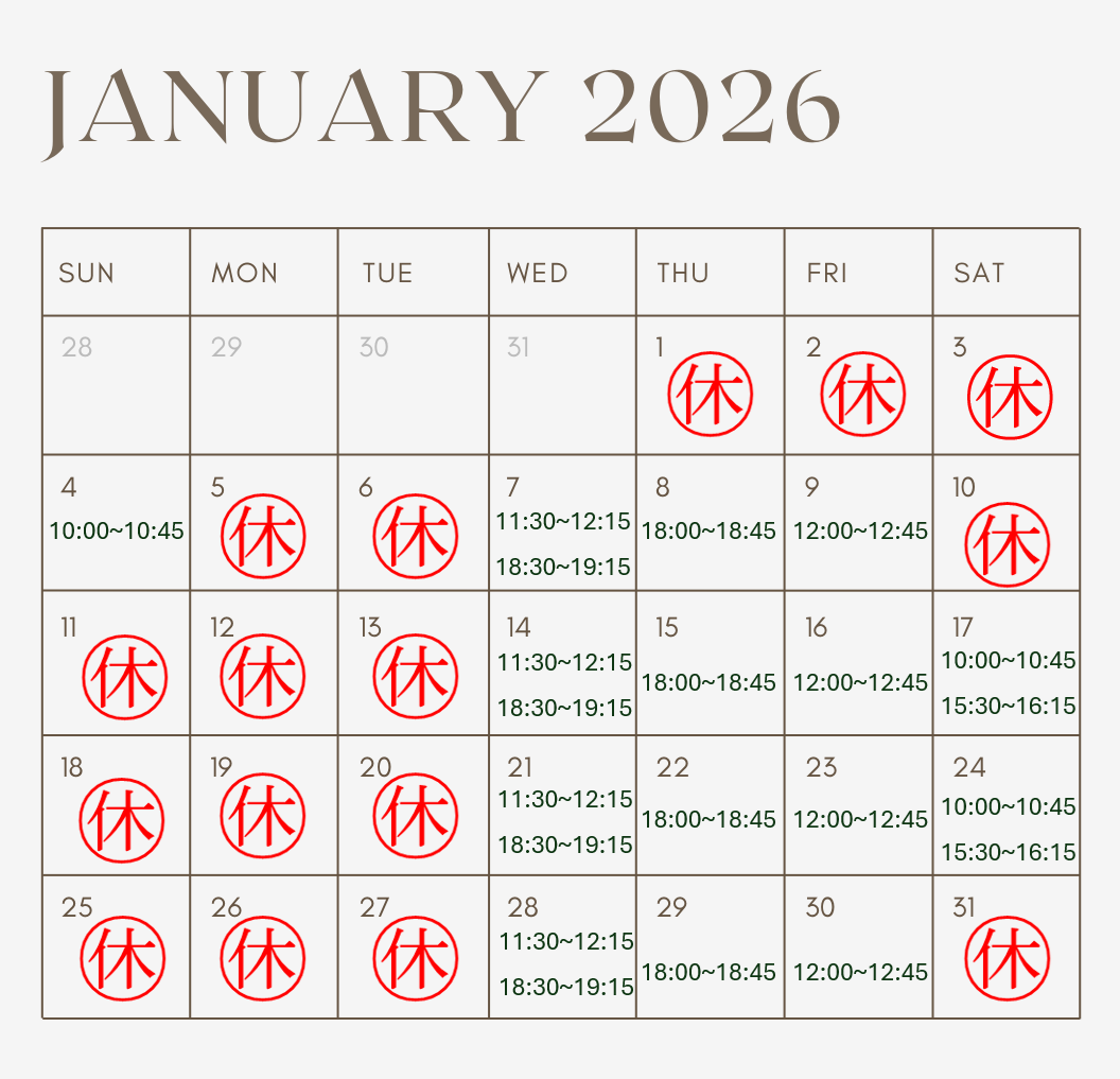 1月のヨガレッスンスケジュールをお知らせいたします。